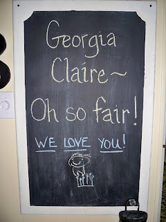 Here is a closer picture of the bird cage...the initials were made by my sister Kathy. I also clothespinned cards and notes that we received for Georgia, as well as her hat and hospital bracelet from her birth.
